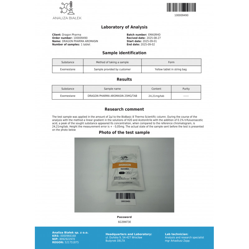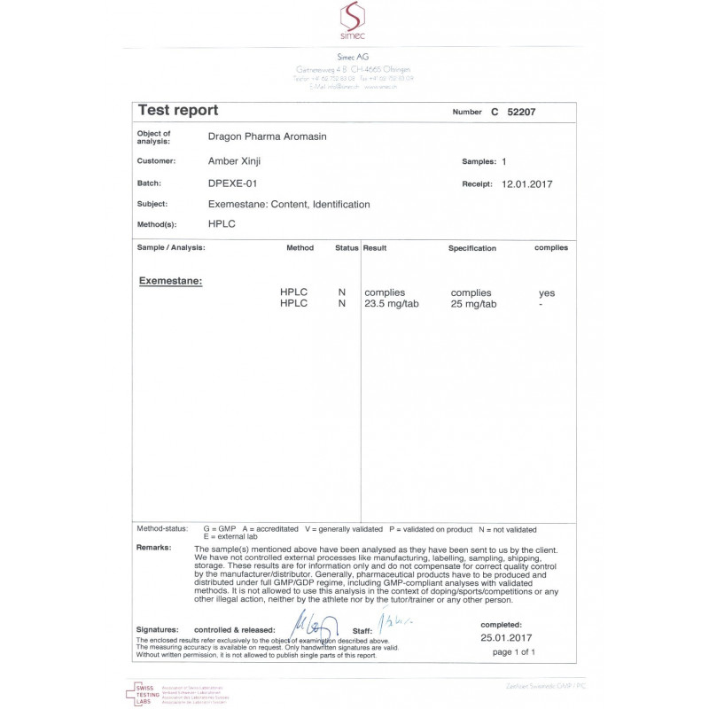 Manufacturer: Dragon Pharma Substance: Exemestane Package: 100 tabs (25 mg/tab)