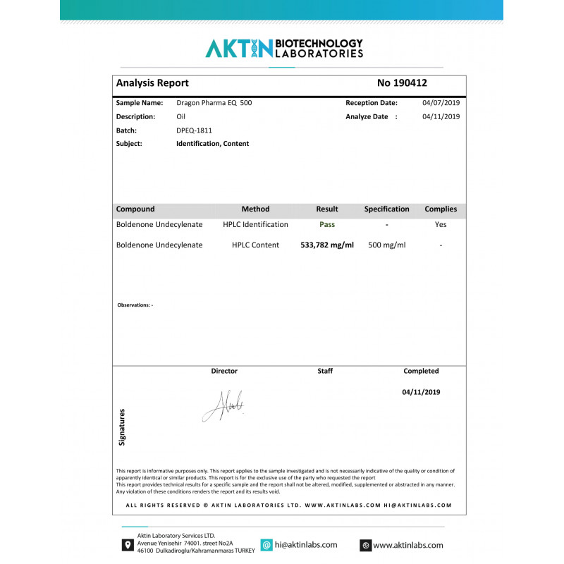 Manufacturer: Dragon Pharma Substance: Boldenone Undecylenate Pack: 10 ml vial (500 mg/ml)
