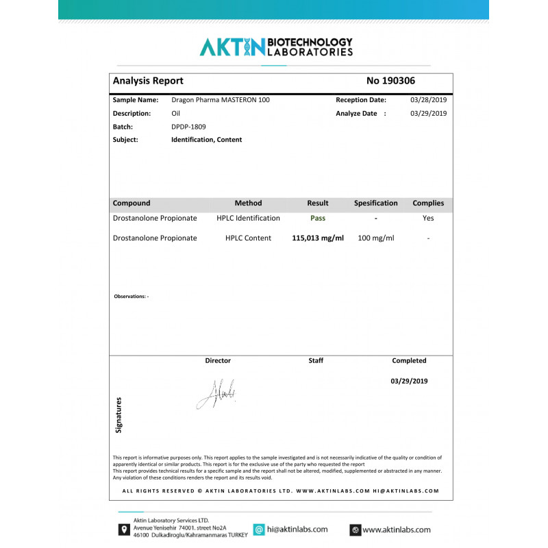 Manufacturer: Dragon Pharma Substance: Drostanolone Di-Propionate Package: 10 mL vial (100 mg/mL)