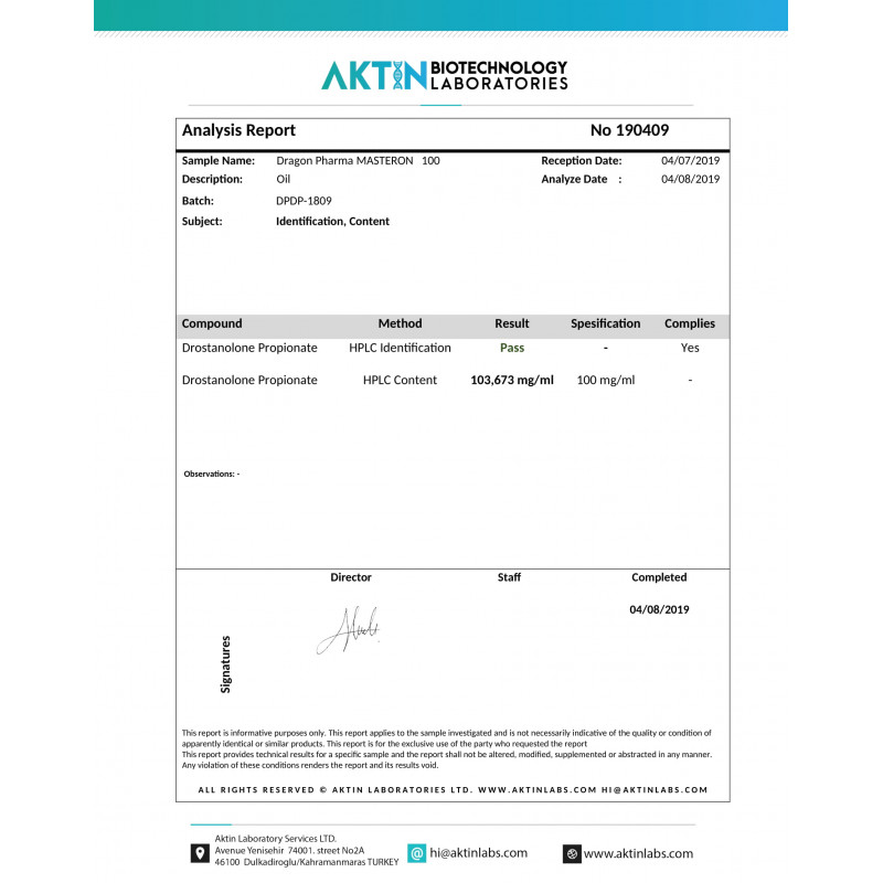 Manufacturer: Dragon Pharma Substance: Drostanolone Di-Propionate Package: 10 mL vial (100 mg/mL)