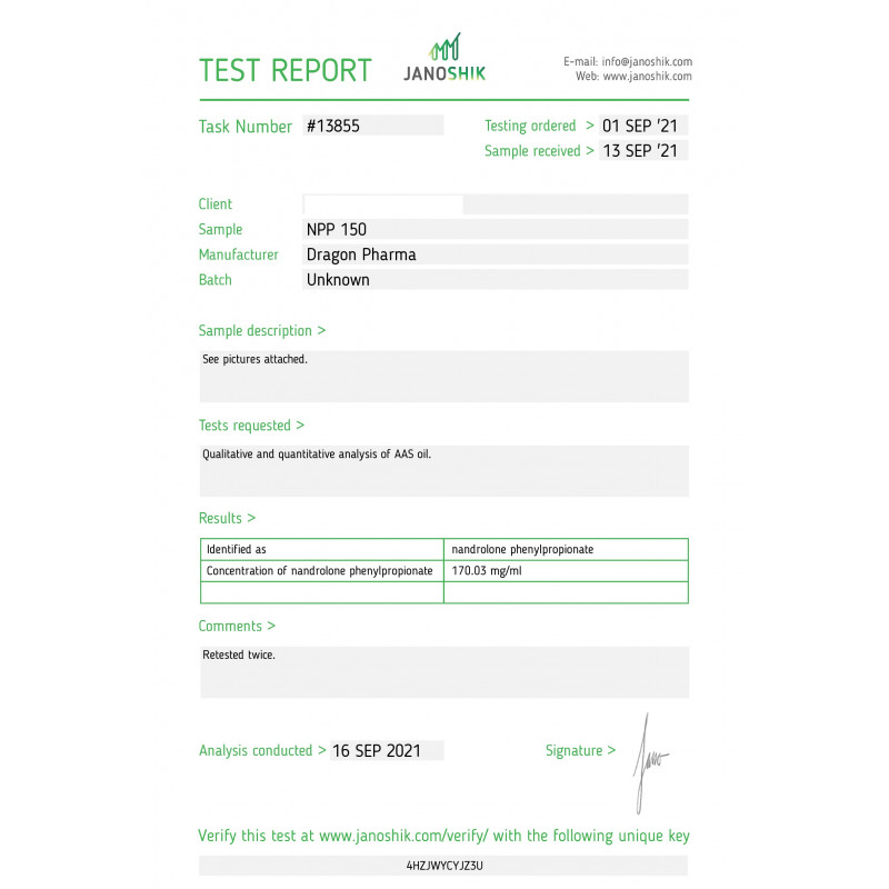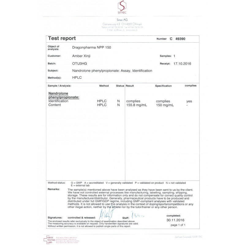 Manufacturer: Dragon Pharma Substance: Nandrolone Phenylpropionate Package: 10 mL vial (150 mg/mL)